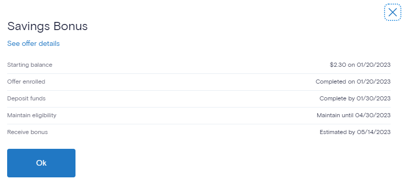 RE:"…maintain at least $10,000 of those new funds, plus your existing balance as of 12 am ET on the day you enrolled, in your account for 90 consecutive days after the 10-day Funding Period. Enroll by 2/15/23."
