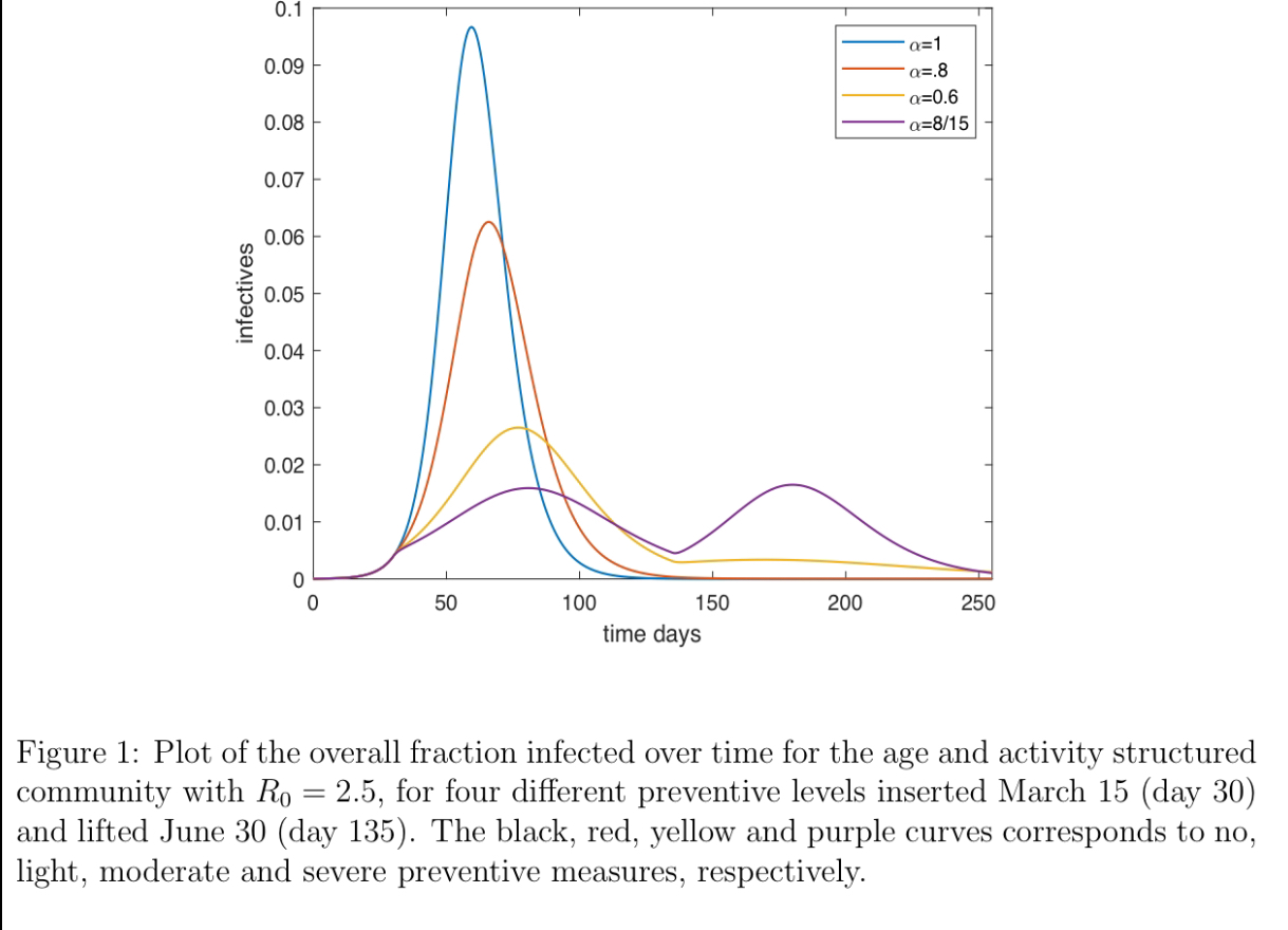 Here’s a nice chart from the paper that shows how different levels of lockdowns can minimizing the total amount of people infected as well as control the amount sick at any one time. If the outbreak spreads super fast, it will infect considerably more than the minimum herd immunity level and hence more people will be sick (and some die) than if you slow it down. OTOH, if you slow it down too much and have fewer people exposed than the herd immunity level, you’ll have a second wave outbreak that many again overshoot and lead to unnecessary additional exposures / deaths