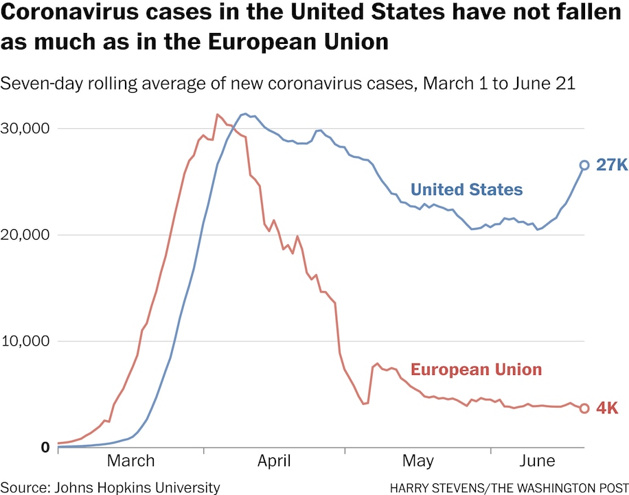 122,000 confirmed corona virus deaths in the US – 26% of the worldwide total.