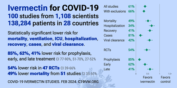 He shows how people with symptomatic covid, including long haulers, often see nearly immediate improvements following treatments with ivermectin. Cites successes in prophylaxis and preventing transmission when a household member tests positive. Publication with their results should be out very soon, and in the meanwhile, if you need a courageous doctor to proscribe it to you via telemedicine, their site has a number of them listed.