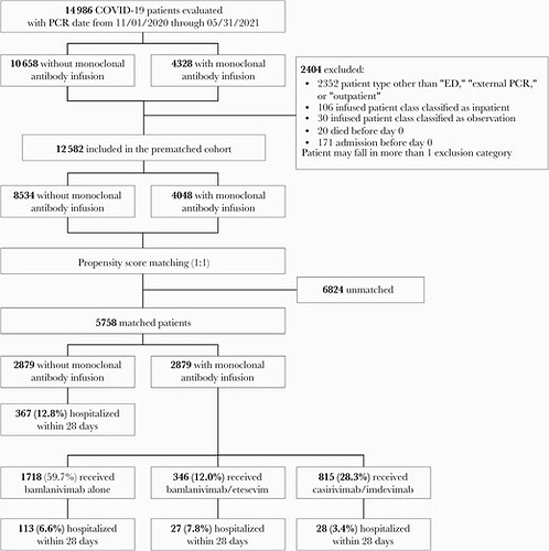 This is the first study to perform a large-cohort comparison of 3 of the 4 mAb treatments available. Our results indicate that infusion with casirivimab and imdevimab resulted in better outcomes