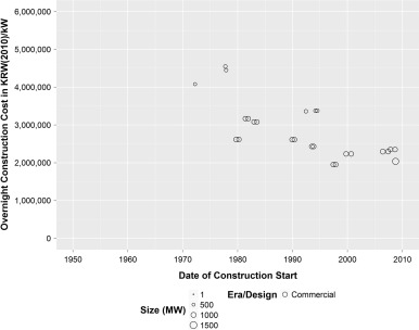 When the US and Western European countries stopped building nuclear power in the 1990s, several other countries continued to build out their nuclear fleets in East and South Asia and Eastern Europe. In particular, large fleets of standardized reactors were built in Japan, South Korea, India, and more recently in China. While a handful of studies note the low cost of reactors in these regions today (Du and Parsons, 2009, IEA, 2010), there is little analysis of historic cost trends in these countries.