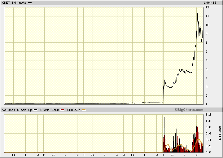 If you didnāt make 10x today, you were in the wrong crypto. CNET, a microcap stock, announced they were getting into the crypto business and bam! $1 to over $11 at the peak today.