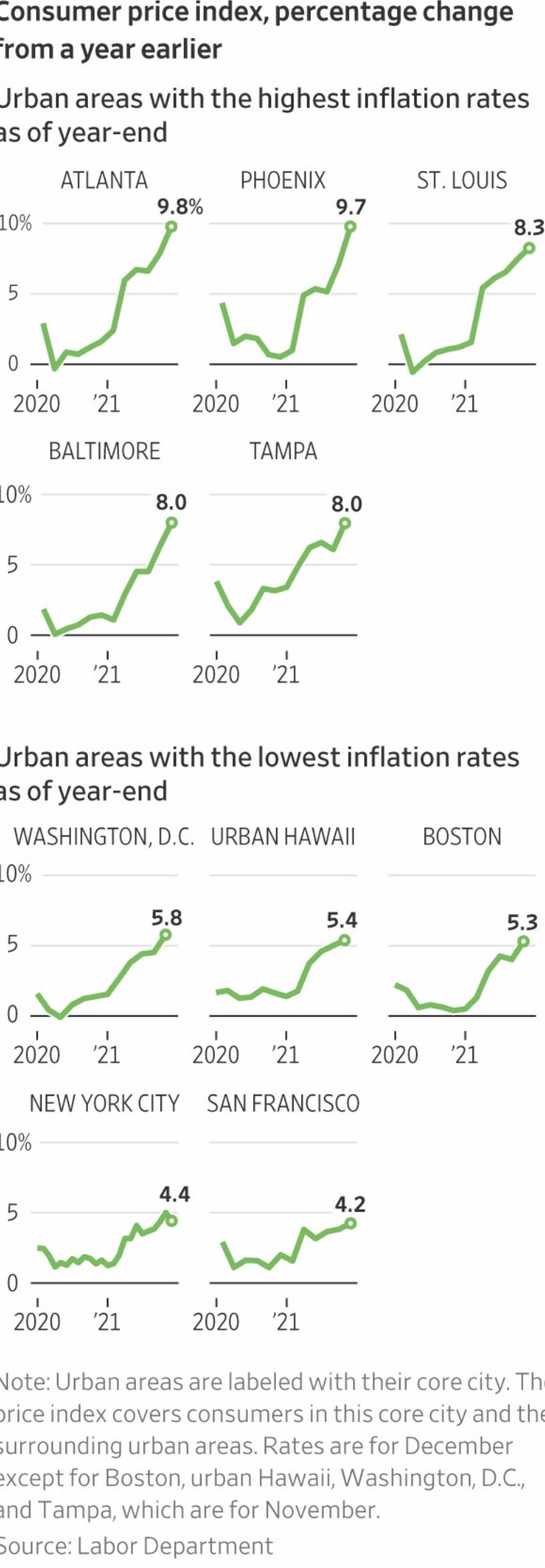 Inflation rates varying by location / city.