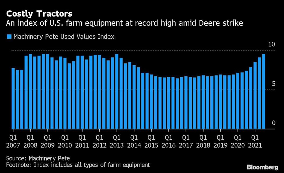 Did you read the article? The guy that created the metric says the tractor prices we’re seeing now have reached the level they hit “during the commodities boom a decade ago.” The difference is there is no commodities boom right now, there is a lack of supply in the tractor market and inflation. He created the metric during the commodities boom, so there is no data going back further than that to show that then and now are anomalies and the stretch between 2015-2019 is “normal.”