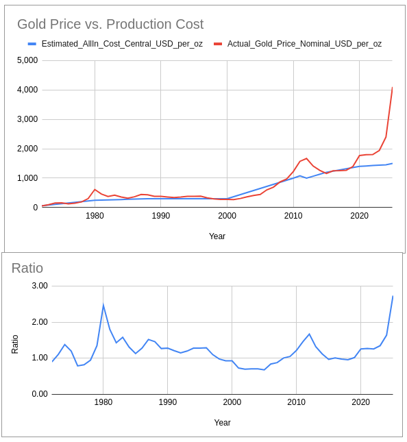 I’m not sure how they reached that conclusion. Even if gold price doesn’t move in sync with inflation, gold has appreciated faster than inflation since 2000. Since 2020, it’s up almost 40% in inflation-adjusted dollars.