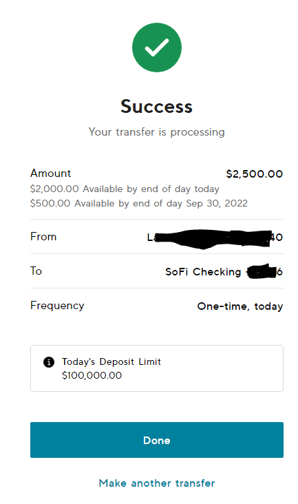 I posted not that long ago about SoFi’s speed with an ACH push. Here is an example of an ACH pull.
