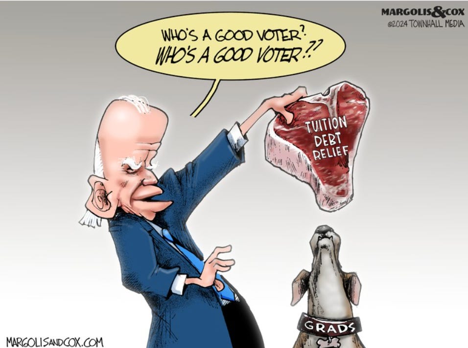 Based on the orchestrated chorus of bigwigs asking Biden to kindly drop out of the race, me thinks he won’t be there in October. His replacement likely will offer more student loan forgiveness and amnesty for illegal immigrants too.