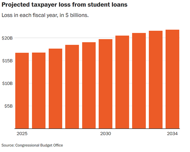 Agree entirely. The loans and the losses represent a direct subsidy from the taxpayers to the universities. The universities have abused the system and increased their tuition and fees at a rate much higher than general inflation. Students look at the loans as “free money” and do not evaluate the worth of the studies objectively…