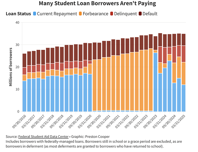 Still, one issue that needs solving is that unlike any other kind of debt, student loans are extended to borrower with basically no due diligence from the lender on the borrower’s ability to repay the debt. Protection from bankruptcy is what lead to this frivolous lending practice where loans are extended equally to someone studying dance or culinary arts vs. someone studying civil engineering. Ability to repay via expected career earnings never seems to enter this process and IMO what lead to excess lending/borrowing and trickled down to associated college costs.