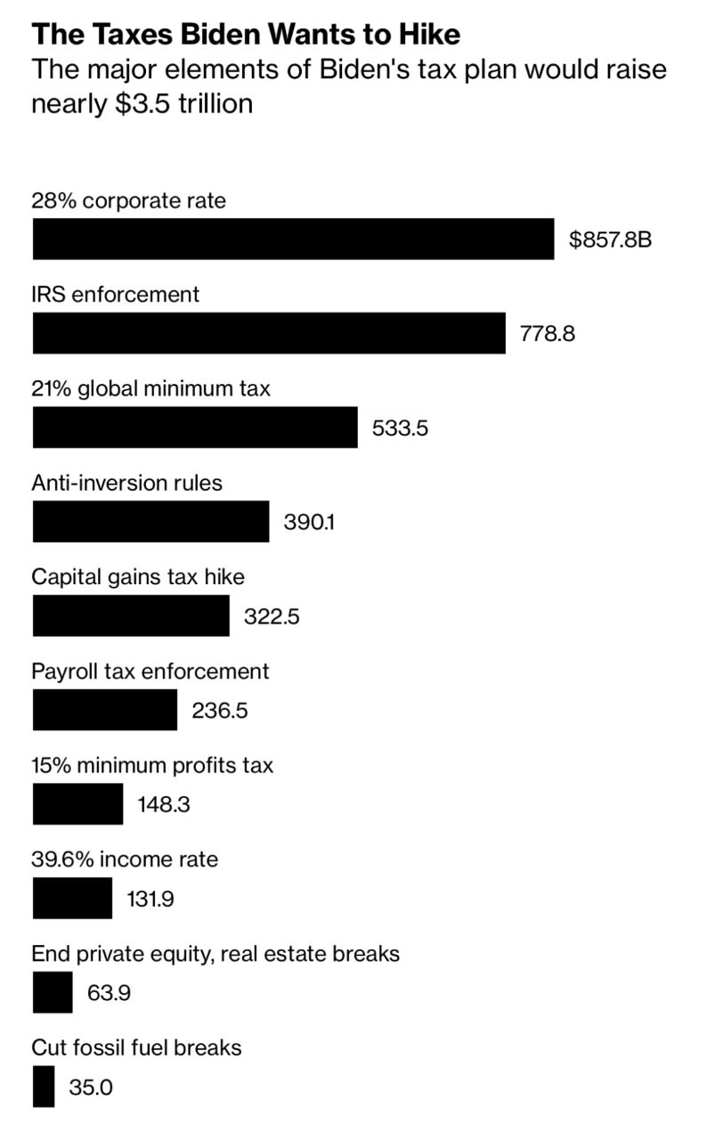 There are a whole lot more tax proposals on the table, including IRA taxes, Mark to market taxes on the Evil Richâs investment assets, various environmental related taxes (and removal of tax breaks for oil and gas), etc. $3.5T is a crazy amount to come up with and theyâre looking at almost everything.