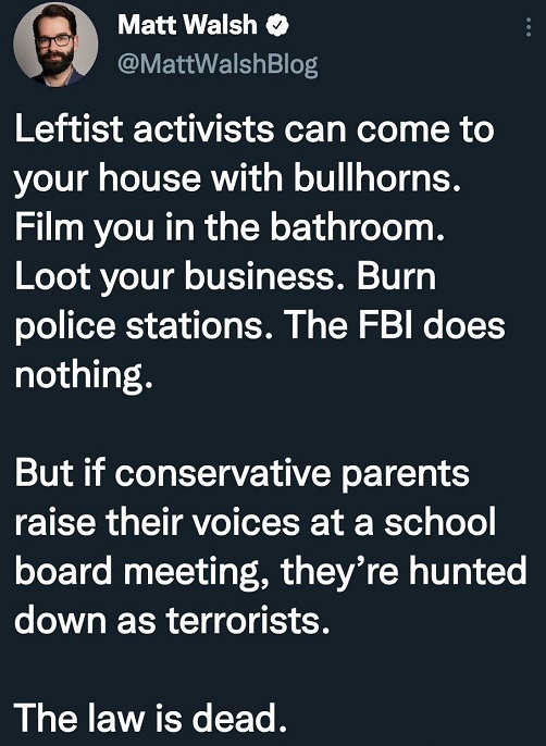Last week, AG Garland sent a memo to the head of the FBI, directing him to work with local law enforcement “to address threats against school administrators, board members, teachers and staff.”