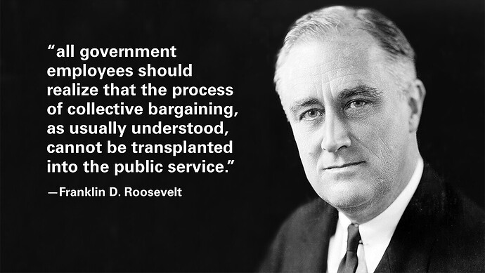 While @shinobi could give us personal memories, I seem to recall that FDR was quite okay with unions of state employees. However, as mentioned, he thought it was an abomination for federal employees. What does that say about his highness?