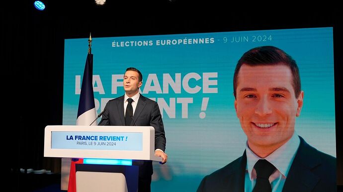 Marine Le Pen’s anti-immigration, nationalist party is estimated to get around 31-32% of the votes, a historic result more than double the share of Macron’s Renaissance party, which is projected to reach around 15%.