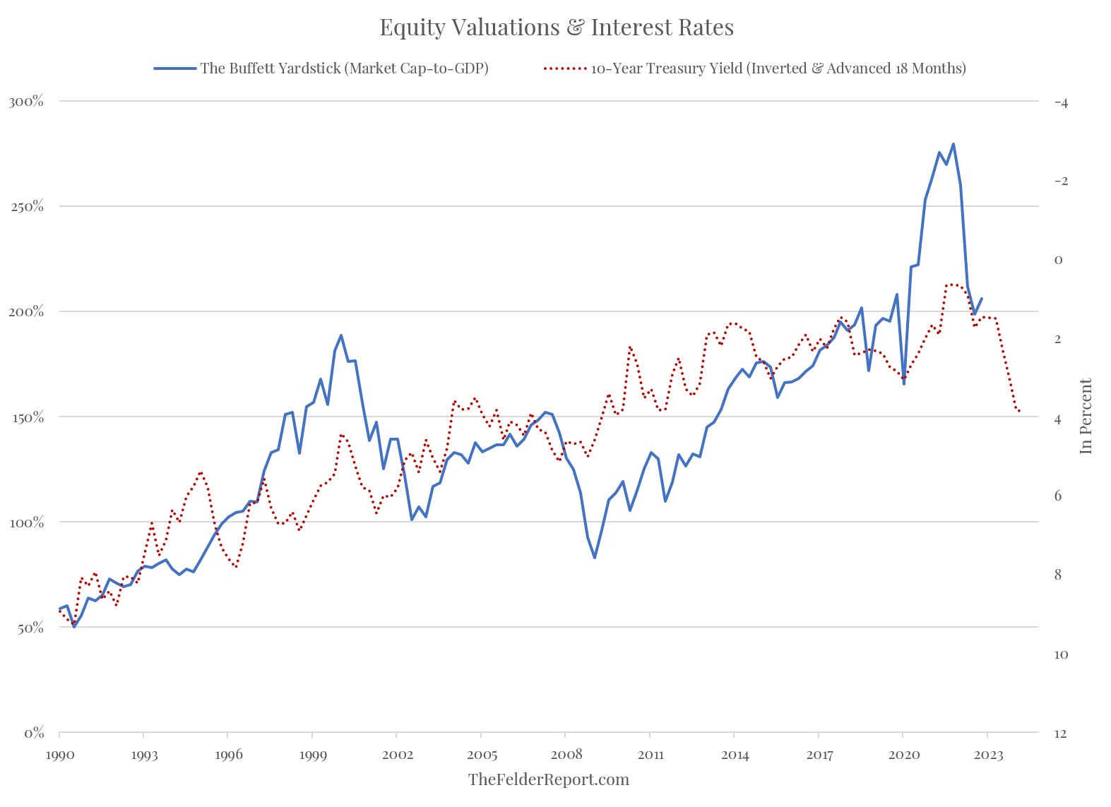 I don’t see the correlations. There was a huge run up in the stock market in 2020 and 2021 with almost no change in the ten year rate and a large drop in the stock market while the rate dropped about 80 basis points in the last few months.