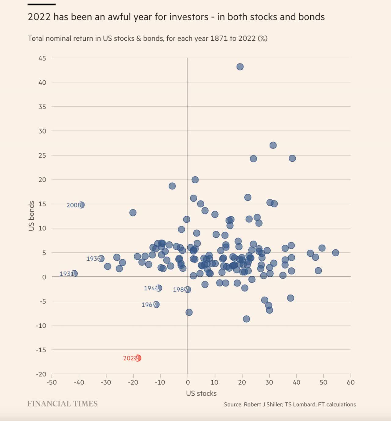 I guess @shinobi’s post aged well. Should have sold. Question is 2023 a repeat or another bad year for bonds AND stocks?
